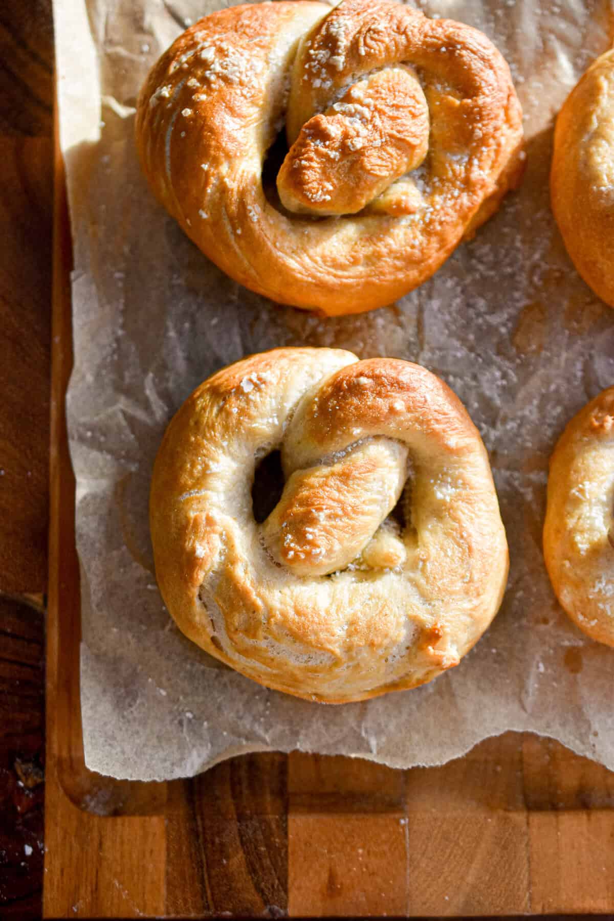 - For extra shine, use an egg wash before baking and right before you add the sea salt to the pretzels.